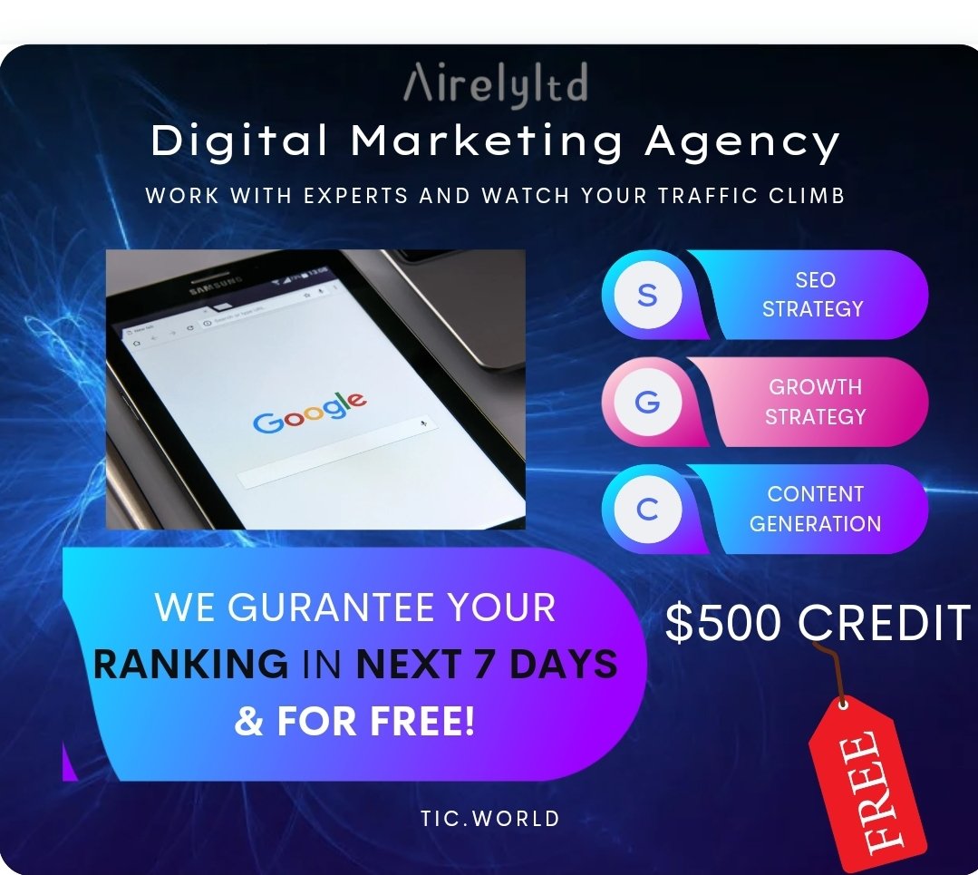 Airelyltd - Digital Marketing Agency London is a company that you could account on to Rank on Google. We help you to rank at first page of google in 7 days with a pocket friendly budget. If you're a Small Business - Enterprenuer - SMBs then our SEO services easier words Google Ranking Services can definitely help you. Our SEOs engineer help google figure out that your website, local store is worth ranking, they help design a navigational map for google. Which helps you to rank faster and for logner run. We have the best Media Buyers: Google Ads Expert, Facebook Ads Expert, TikTok Ads Expert, Bing expert, LinkedIn expert. Book a free consultation call it's 100% free & a 1000% worth it.😉